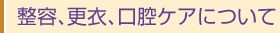 - 洗顔・歯磨き・整髪・化粧・髭剃り・衣類の着脱等に何らかの支援を要するときは、職員が対応いたします。